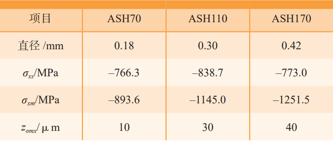 Table 3 Diameter of different types of shots and residual stress calculation results