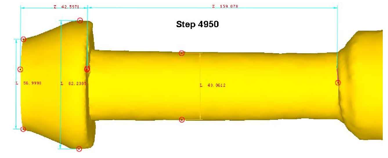 Use the measuring tool in dfeorm post processor to measure the dimensions of each part of the spiral bevel gear blank workpiece obtained by cross wedge rolling. The measurement results are shown in Figure 1: