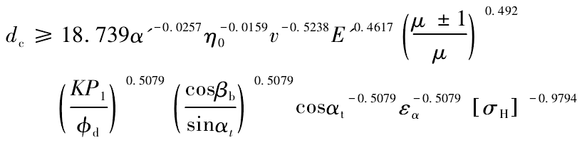 Where α is the pressure angle; V is the linear speed, M / S; N1 is the driving wheel speed, R / min.