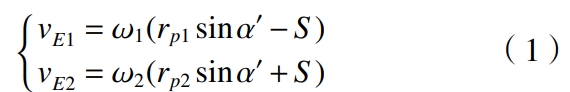Wherein, and are the angular velocities of the two gears;is the pressure angle of the pitch circle;rp1 and rp2 are the pitch radii of the two gears;S is the distance from node P to the meshing pointThe distance of E, during the process of circular engagement, S corresponds to the actual engagement lineThe change of the position of the internal gear point E in B1B2, where B1 and B2 are the gear pairsEngagement and disengagement points.