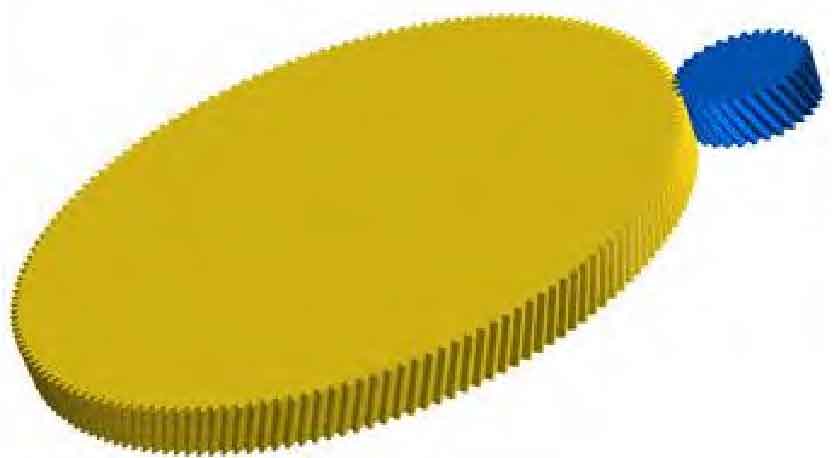 Kisssoft, a software for gear design and analysis, controls the actual tooth thickness deviation according to the range determined by the input tooth thickness deviation. Obviously, when the tooth thickness deviation is the same, the gear pair with any determined tooth thickness deviation can be obtained. In order to study the influence of different tooth thickness deviation on the vibration characteristics of gear pair, the meshing models of gear pair with tooth thickness deviation were established Δ Es0 means no tooth thickness deviation. Kisssoft is used to establish the calculation models of gear pair meshing stiffness excitation and transmission error excitation according to the above basic parameters and tooth thickness deviation, and the three-dimensional model of gear pair with different tooth thickness deviation is established, as shown in Figure 2.