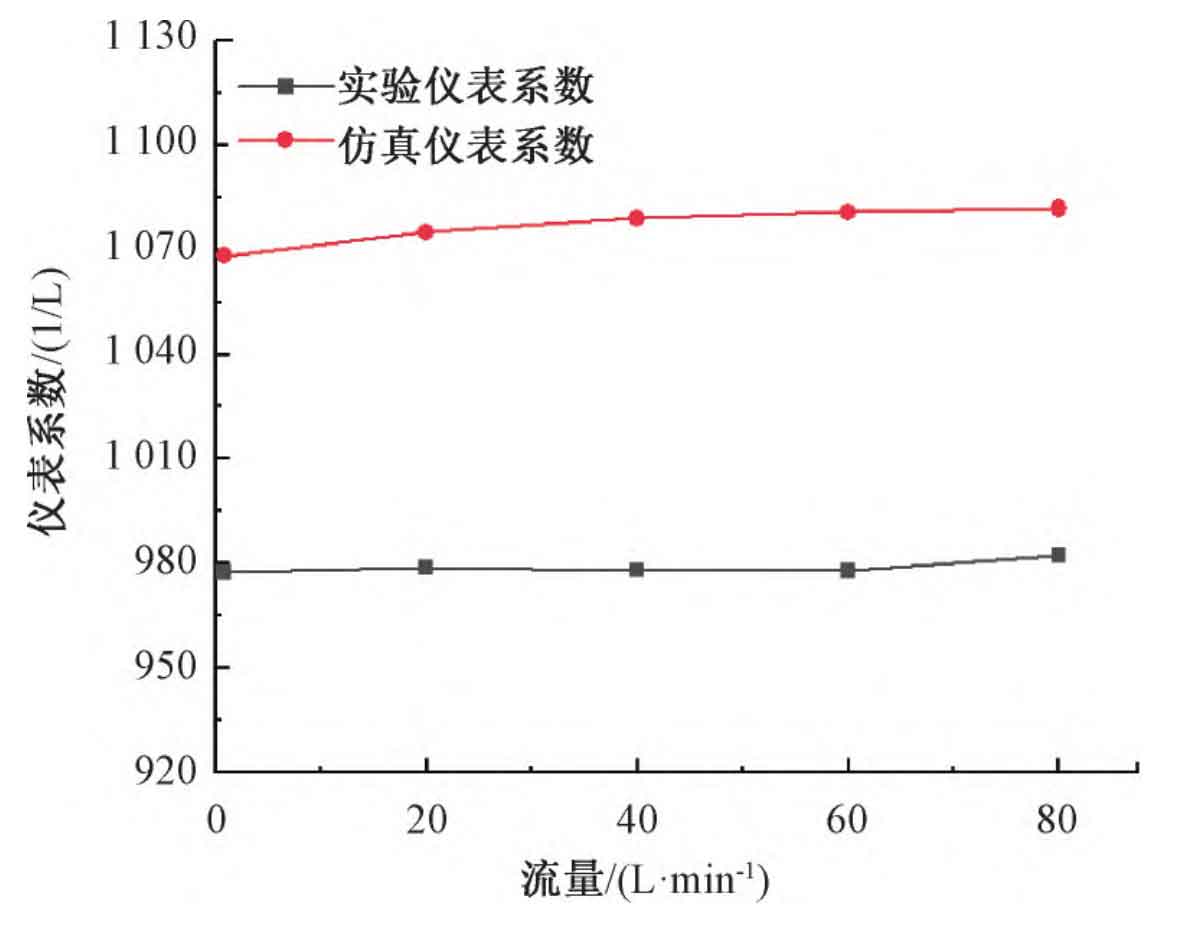 1) The trend of the coefficient of the simulated instrument of the cylindrical gear flowmeter changing with flow rate is consistent with the experimental results, which verifies the effectiveness of the simulation method based on the six degree of freedom model;