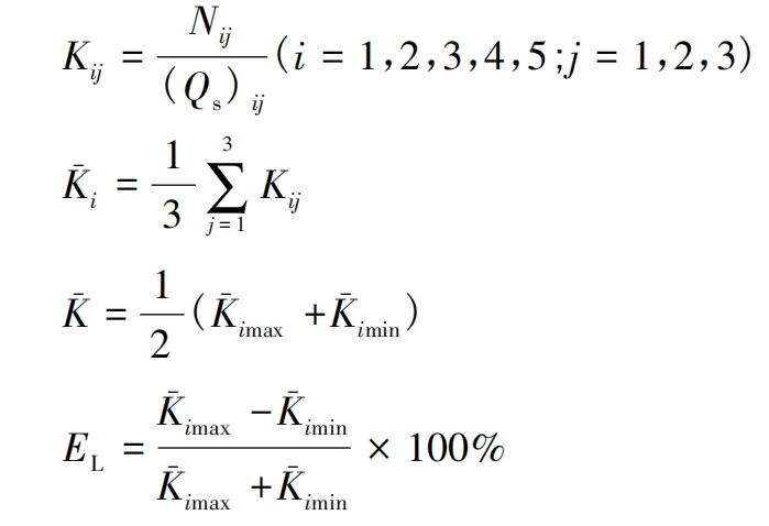 In the formula: Kij is the instrument coefficient measured in a single experiment; Nij is the number of pulses measured in a single experiment; (Qs) ij is the cumulative flow rate value of a single experimental standard device; K-i is the average instrument coefficient of the i-th flow point; K-imax is the maximum instrument coefficient within the entire flow range; K-imin is the minimum instrument coefficient within the entire flow range.