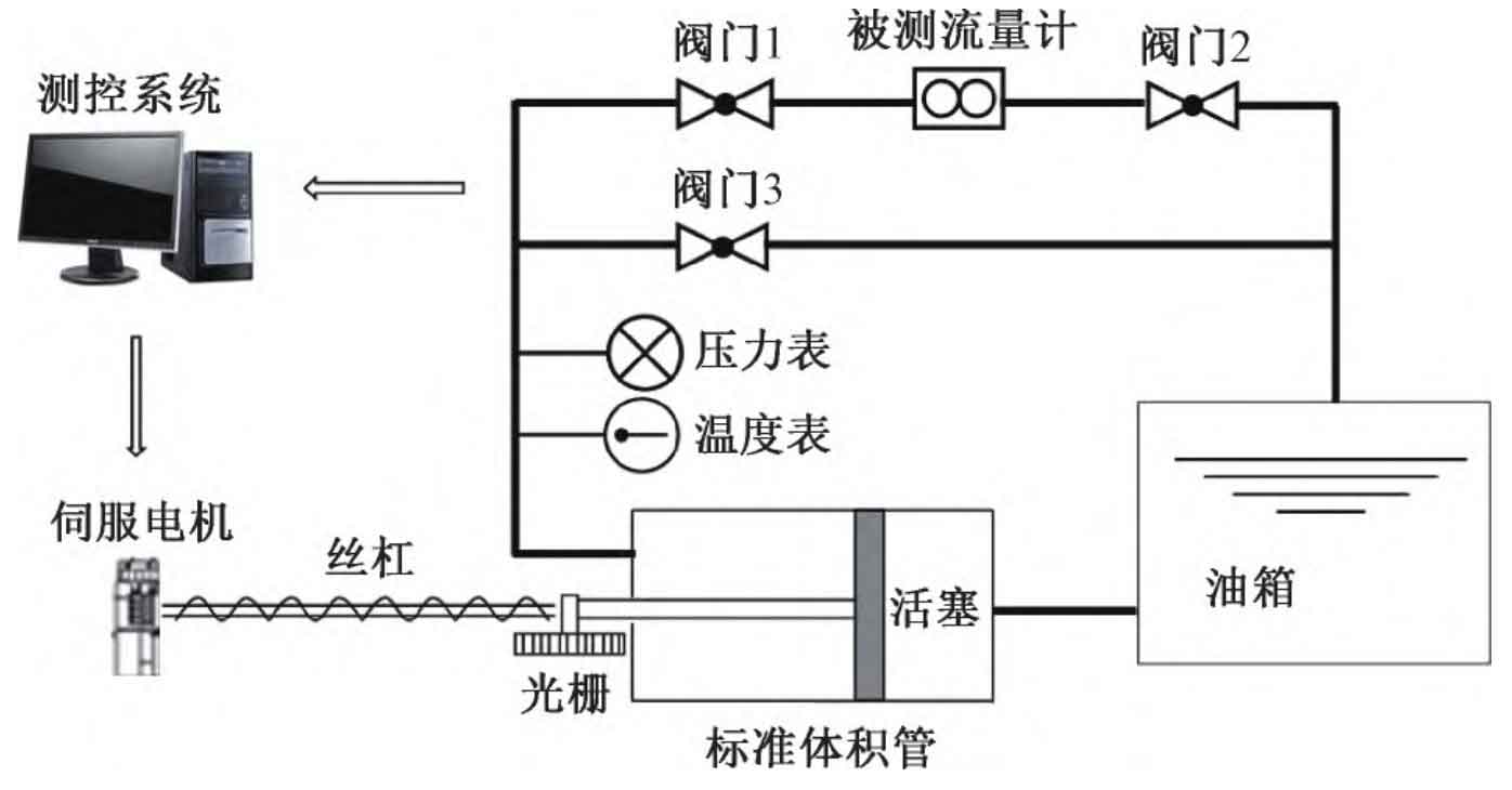 To verify the reliability of the simulation method, real flow testing was conducted on the volumetric tube flow standard device at AVIC 304 Institute. The system diagram of the experimental device is shown in Figure 4. The measurement range of this device is (0 The overall expansion uncertainty of the device is 0, with a range of 15-500 L/min 05% (k=2). During the experiment, the continuous adjustment of the system flow rate was achieved by adjusting the speed value of the servo motor and the proportional speed control valve. The cumulative flow rate in the volumetric tube was used as the standard flow rate, and the pulse signal of the measured flow meter was collected and recorded by the signal acquisition device.