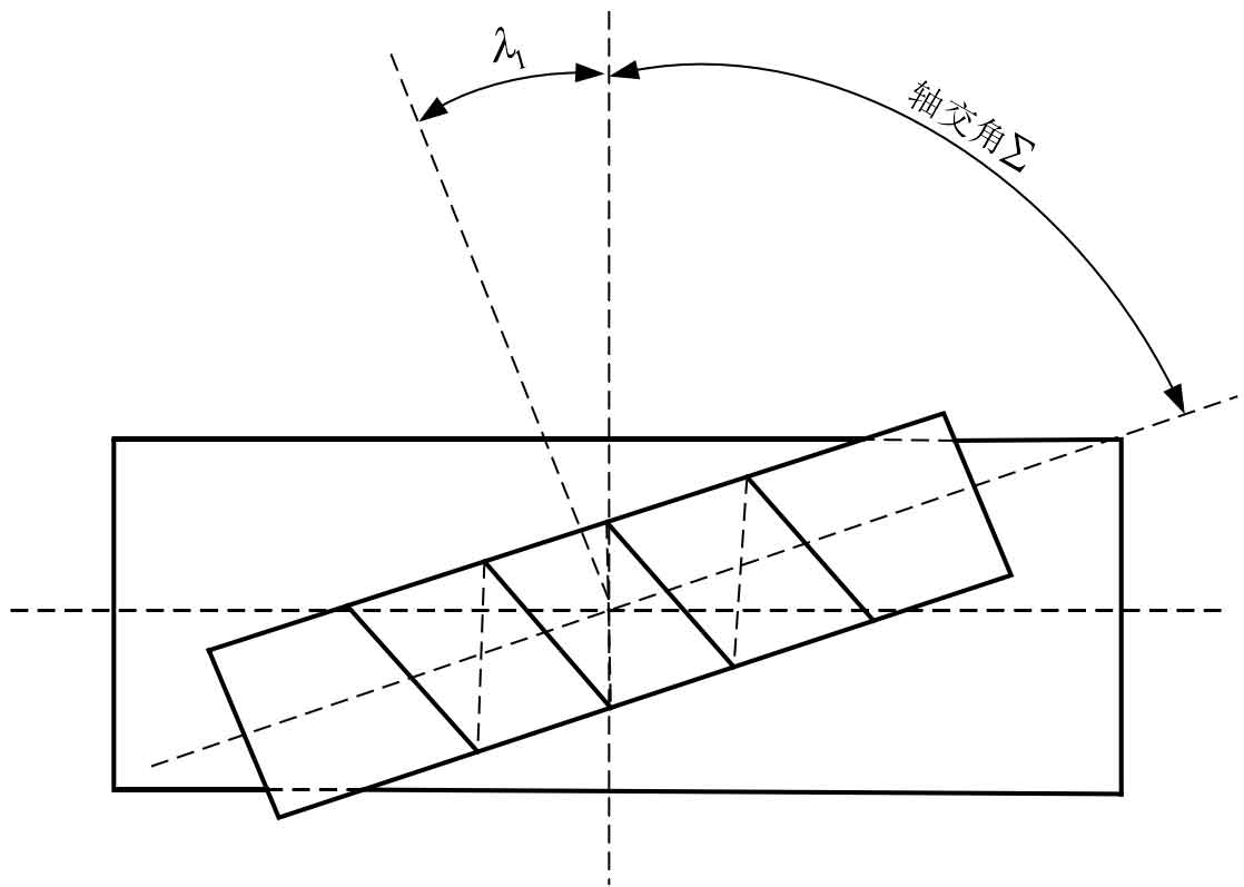 The intersection angle of hob installation axis refers to the minimum staggered angle between hob axis and gear axis, as shown in the figure. In the figure, ∑ represents the installation axis intersection angle of hob for hobbing spur gear, λ 1 indicates the spiral rise angle of hob. When hobbing cylindrical gear, the installation error of hob refers to the offset between the actual installation position and the theoretical installation position caused by various factors in the installation process of hob. The intersection angle error of hob installation axis refers to that the actual hob axis is inclined by an angle e Σ relative to the ideal hob axis.