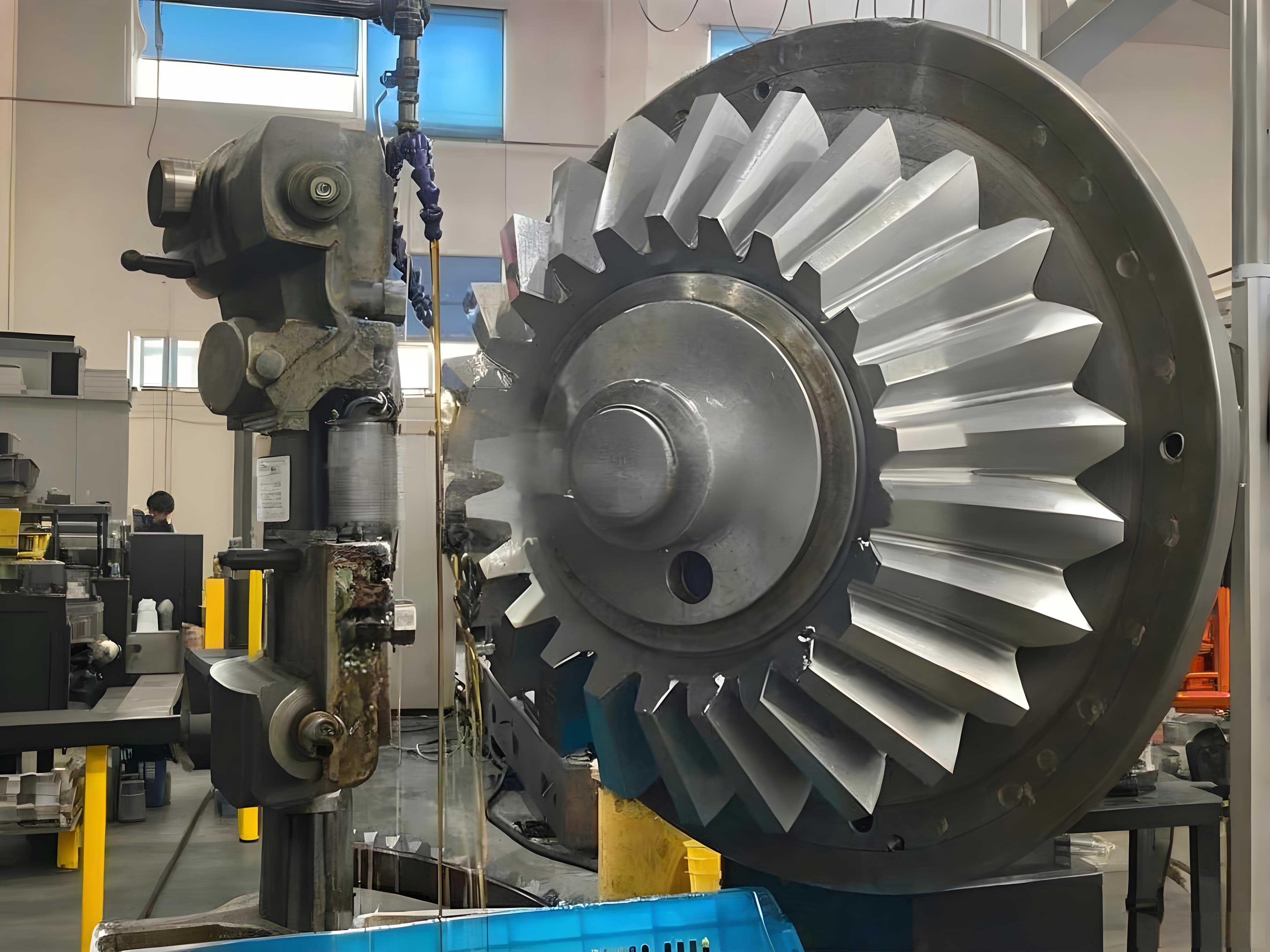 This would translate to specific gear teeth counts, e.g., $\frac{100}{20} \times \frac{100}{20}$. The generating gear ratio ensures the cradle rotation is synchronized with the workpiece rotation to correctly generate the involute-based bevel gear profile. The machine’s manual provides the foundational formula, which is adapted for the specific cone angle and number of teeth of this ultra-low-count miter gear electrode.