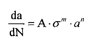 Where, σ I. applied stress, N; α – crack length, mm; A. M, N – constant determined by experiment.